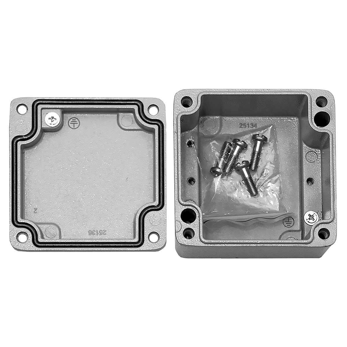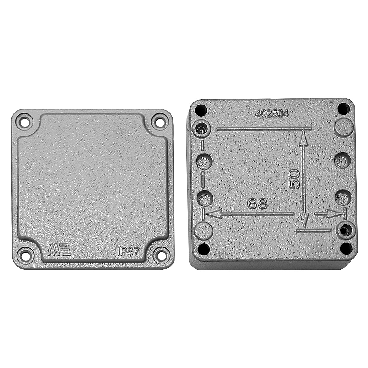 Коробка распределительная алюминиевая, 80x80x60, IP67, крепление крышки - винты, уплотнитель - полиуретан, ударопрочность - IK09, цвет серый RAL 7040, корпус - алюминий, крышка - алюминий.