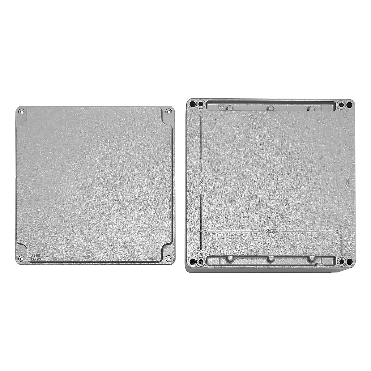 Коробка распределительная алюминиевая, 250x250x110, IP67, крепление крышки - винты, уплотнитель - полиуретан, ударопрочность - IK09, цвет серый RAL 7040, корпус - алюминий, крышка - алюминий.