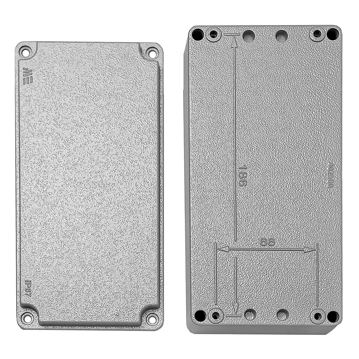 Коробка распределительная алюминиевая, 200x100x80, IP67, крепление крышки - винты, уплотнитель - полиуретан, ударопрочность - IK09, цвет серый RAL 7040, корпус - алюминий, крышка - алюминий.