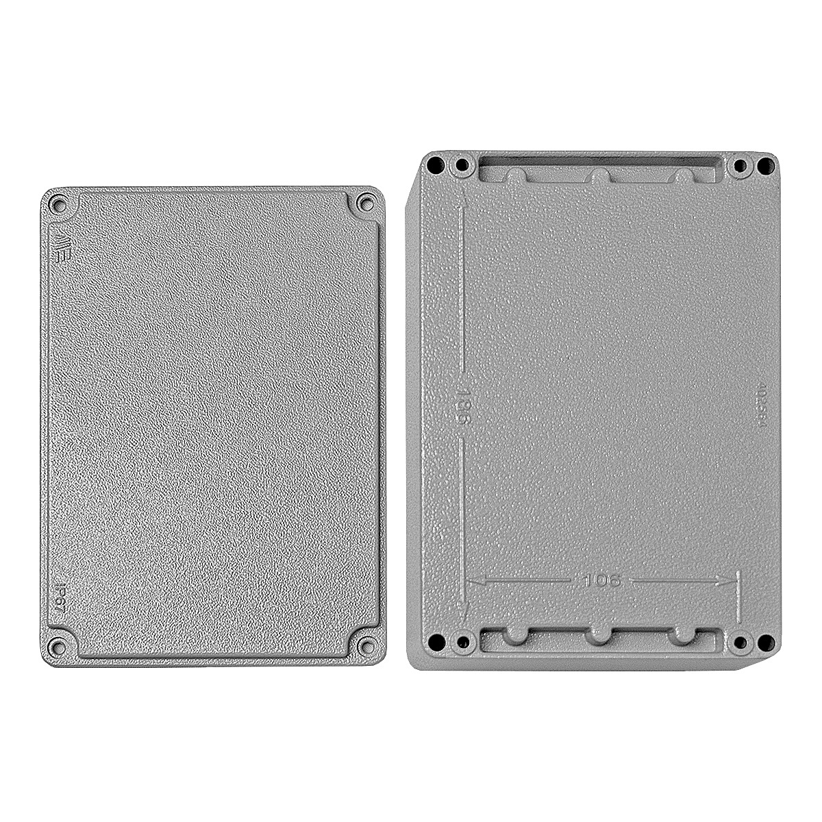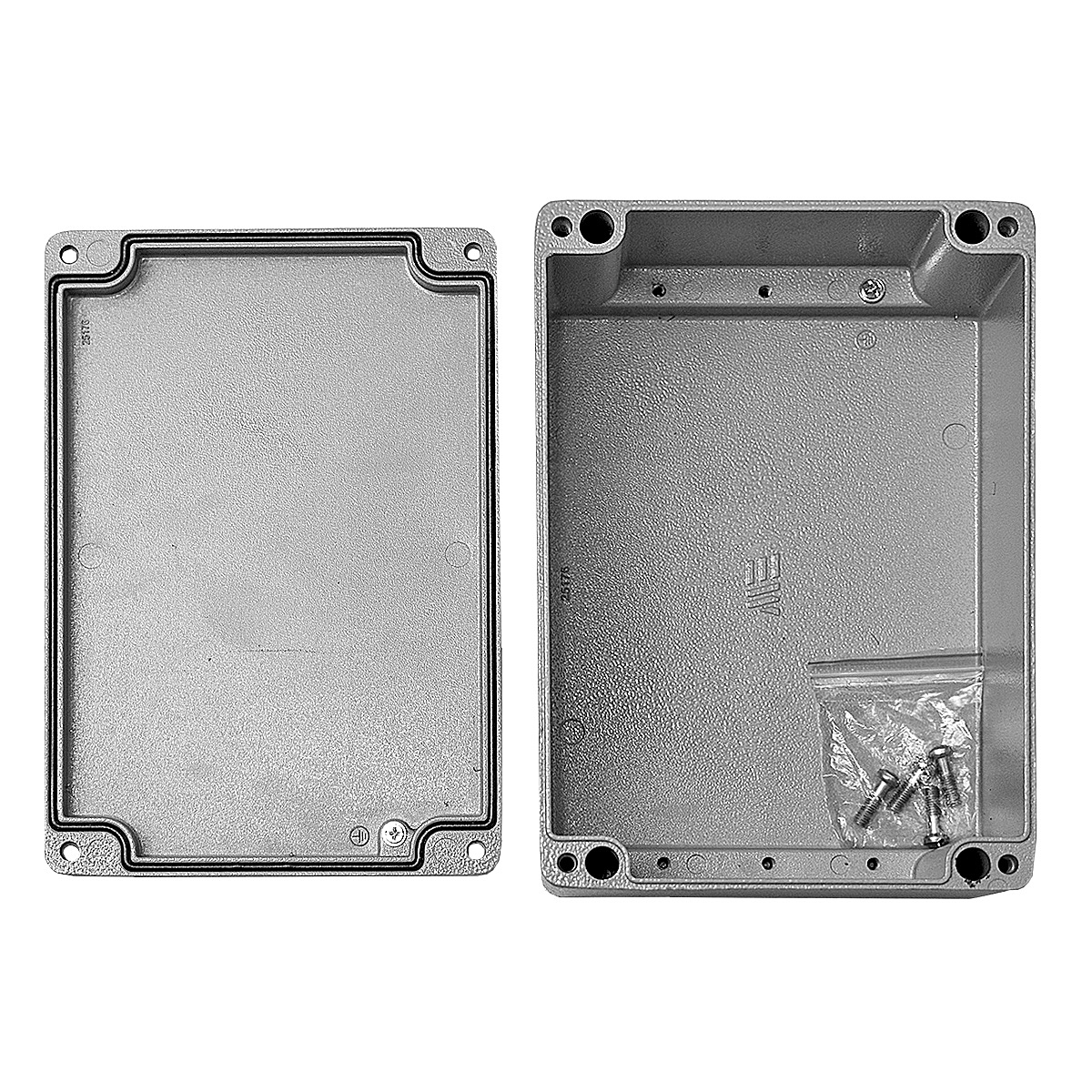 Коробка распределительная алюминиевая, 200x140x90, IP67, крепление крышки - винты, уплотнитель - полиуретан, ударопрочность - IK09, цвет серый RAL 7040, корпус - алюминий, крышка - алюминий.